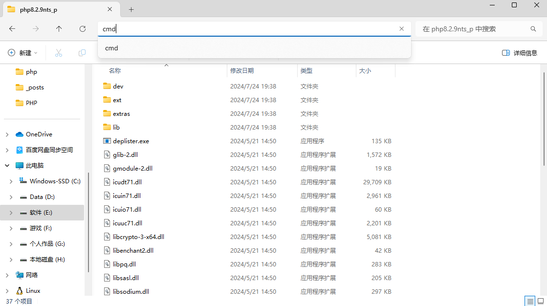 首先进入到你的 PHP 环境根目录下,然后在该目录启动 cmd 终端