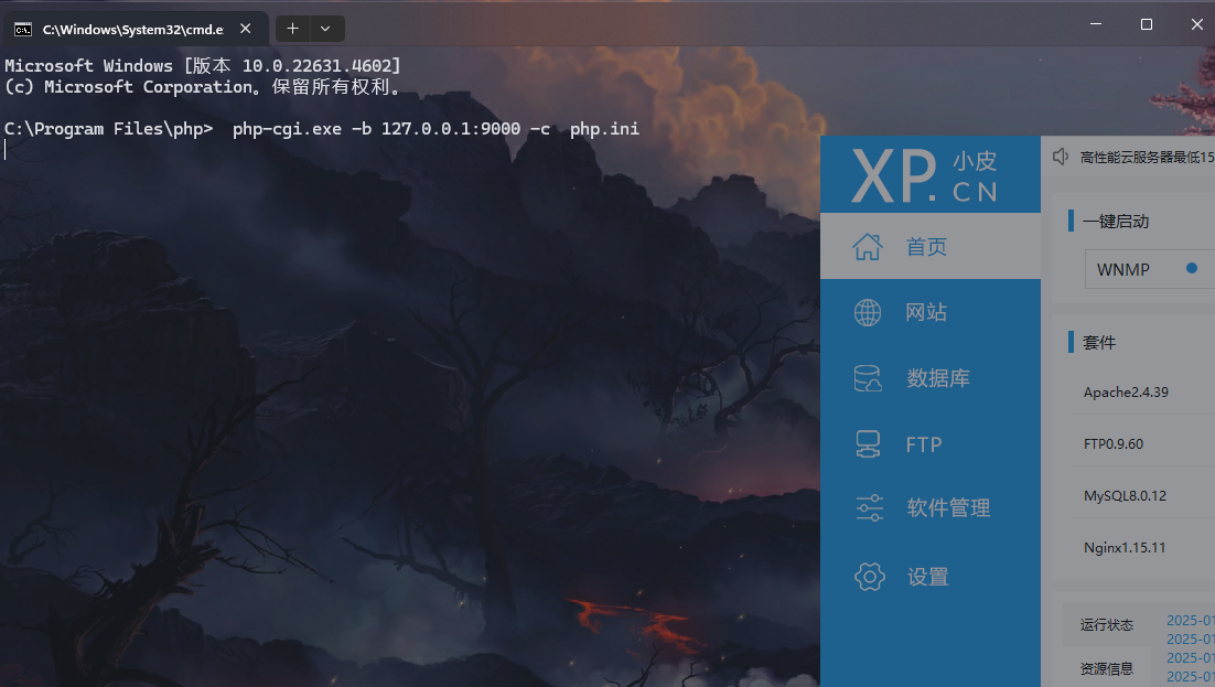 php-cgi.exe -b 127.0.0.1:9000 -c  php.ini